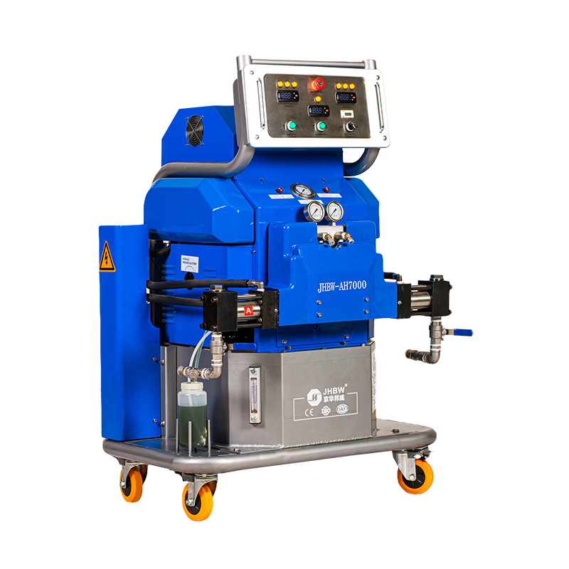 聚氨酯噴涂機的工作原理是通過兩個提料泵把AB雙組分聚脲涂料輸送到機器內部,分別獨立高效加溫,然后通過超高壓噴射霧化。